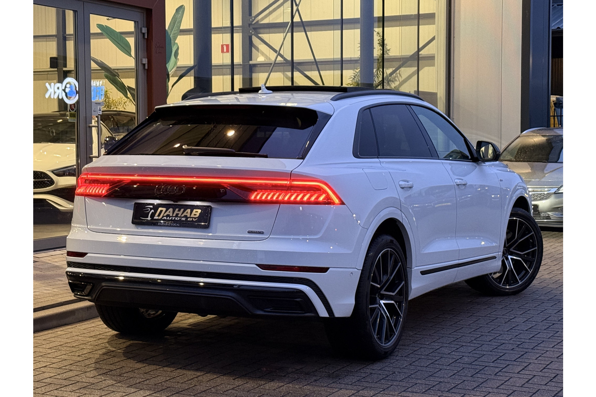 Deze zeer gunstig geprijsde Audi Q8 is zonder overdrijven echt een fantastische occasion. De S-Line styling geeft dit model een elegante en opvallende uitstraling. De krachtige motor geeft deze Audi uitstekende prestaties. Het interieur is luxe uitgevoerd met leren bekleding. Deze Audi Q8 legt bestuurder én bijrijder compleet in de watten met de verwarmbare voorstoelen. Rijden met pit? Geen punt! De sportstoelen geven steun en stevigheid! Een praktische extra is de elektrisch bedienbare achterklep die opent en sluit met een druk op de knop. Ook is de auto voorzien van: 21 inch lichtmetalen velgen, LED koplampen, adaptief dempingsysteem, warmtewerend glas, LED-achterlichten en verstelbare lendensteunen.