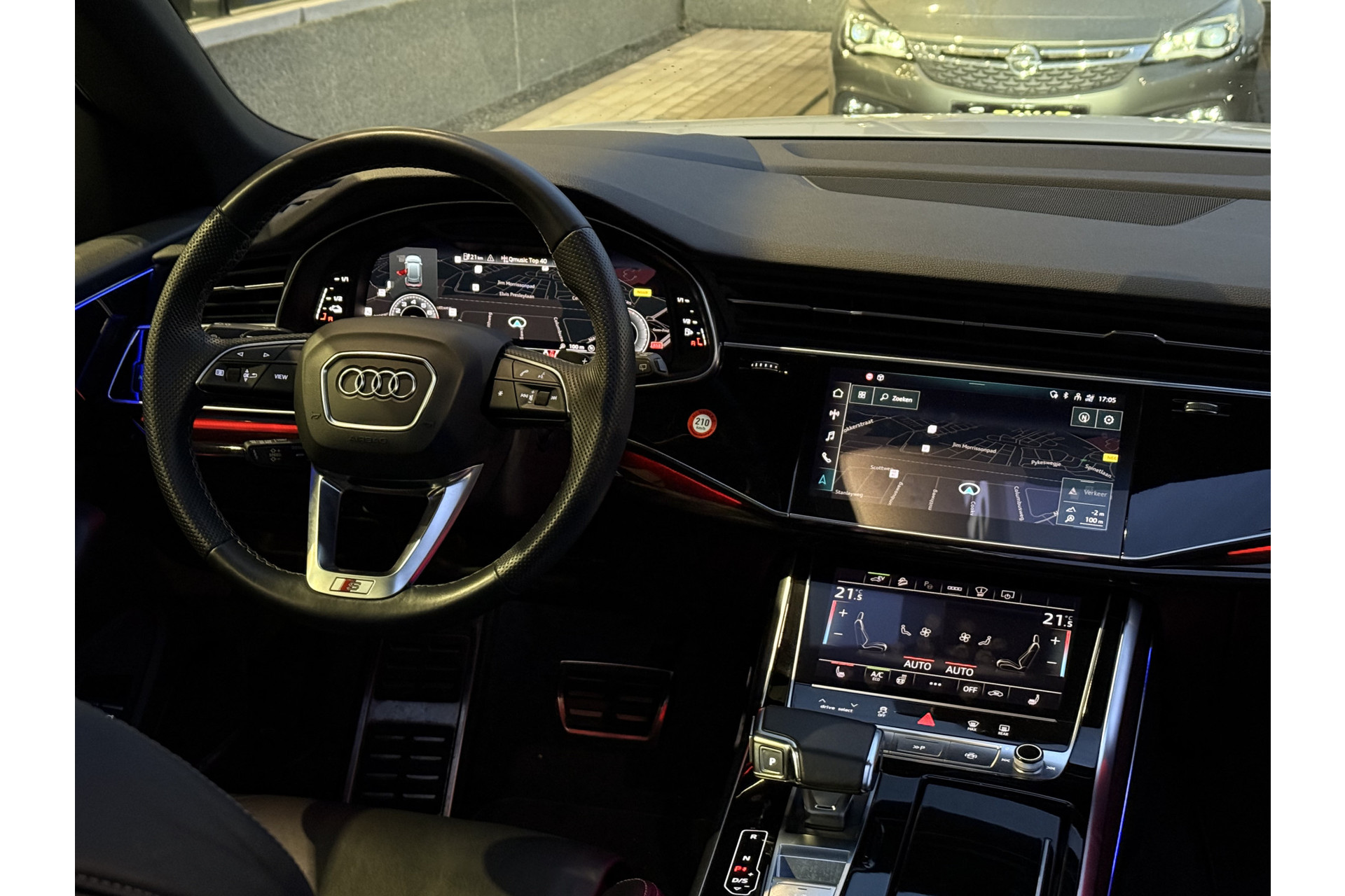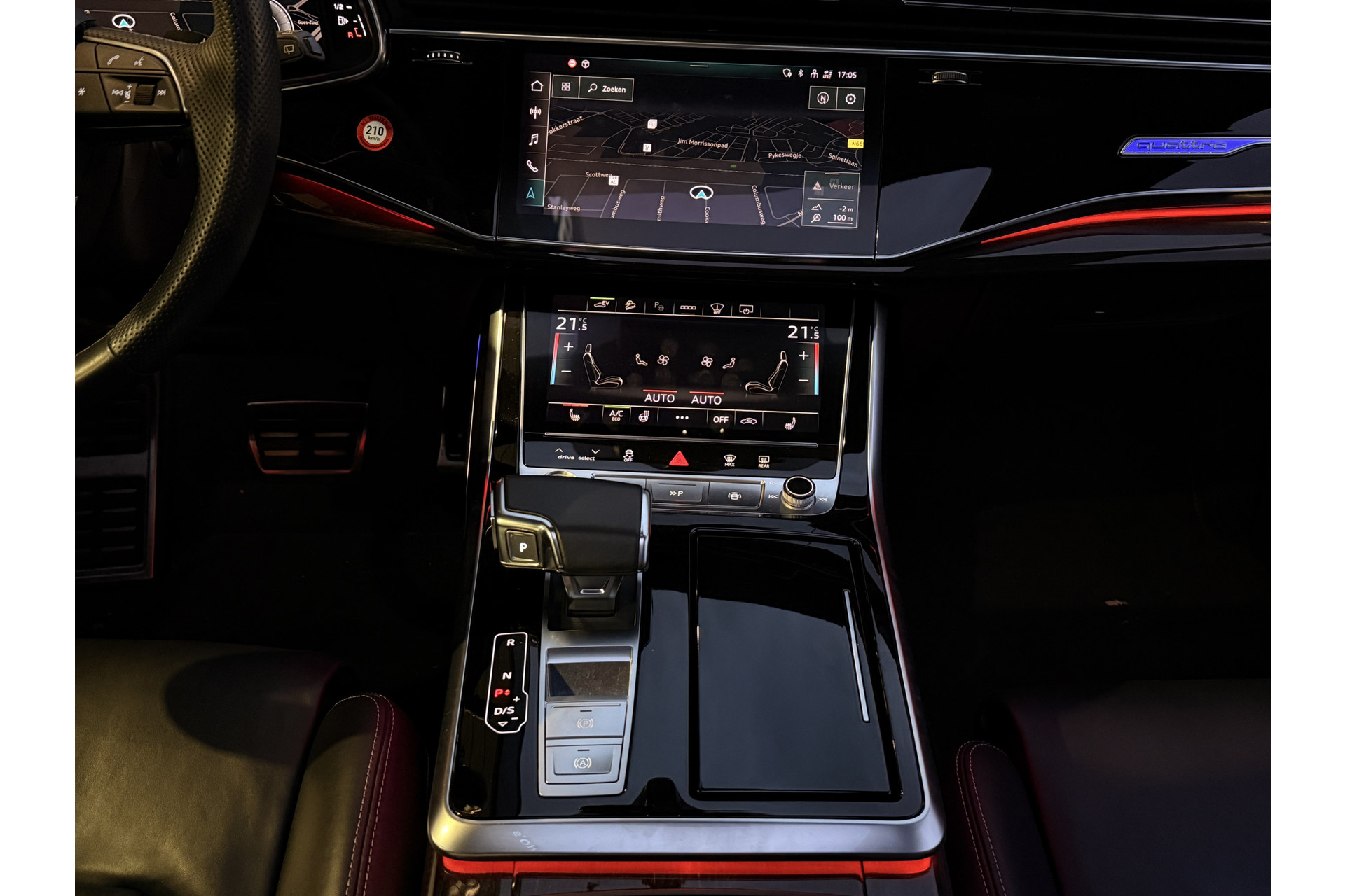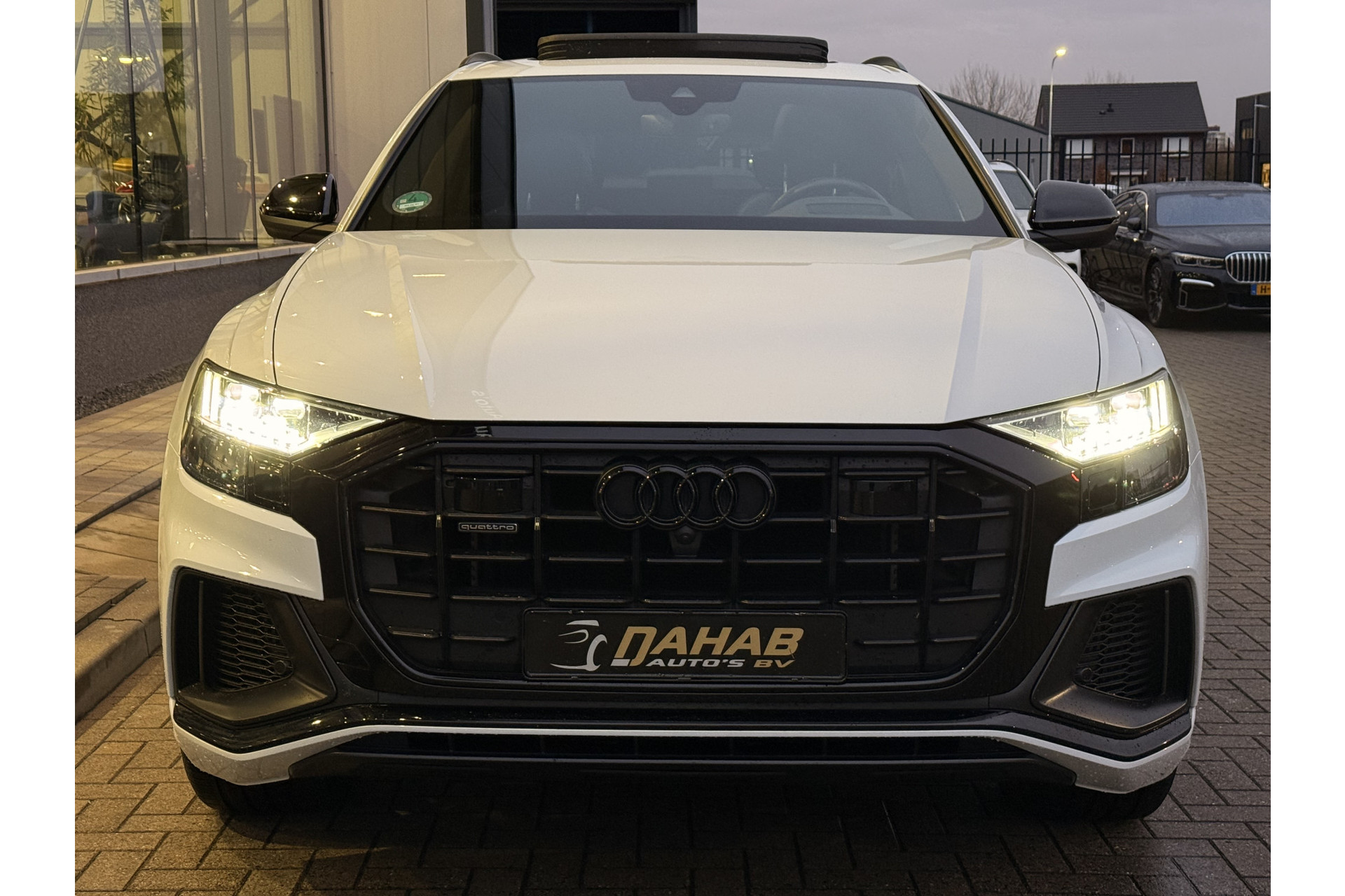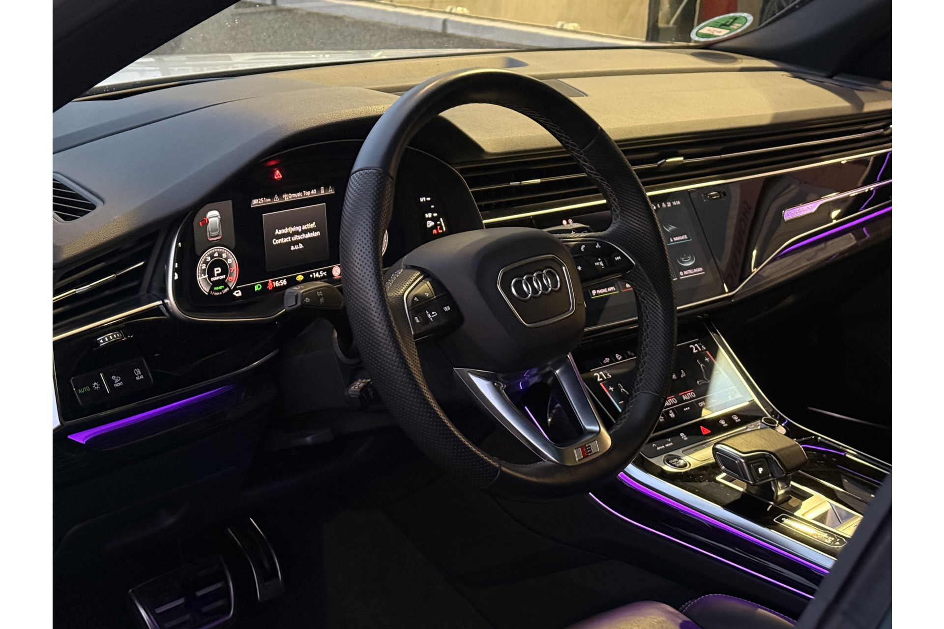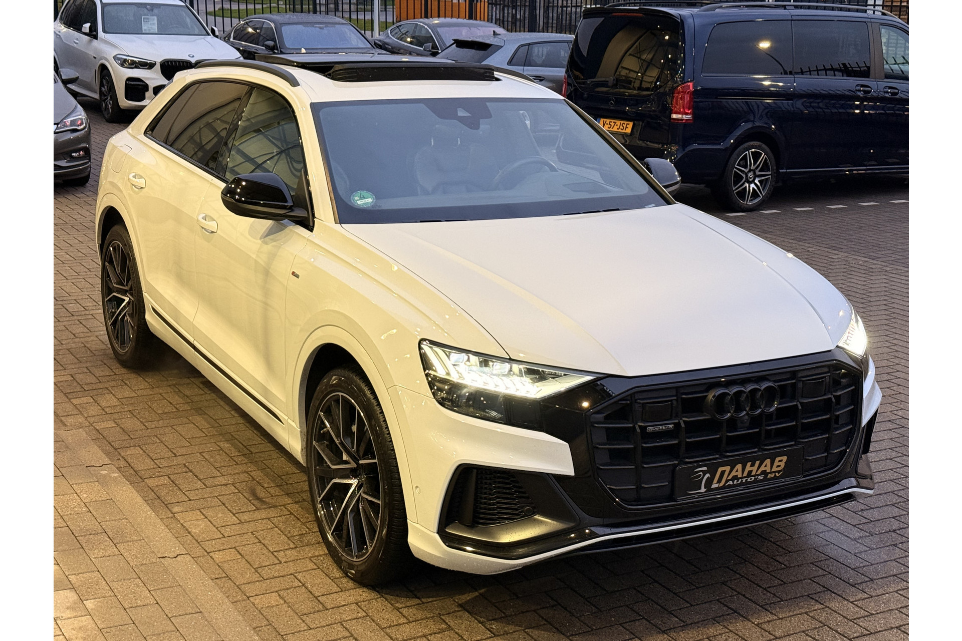 U geniet nog meer van het rijden met uw Audi omdat u wordt beschermd door intelligente veiligheidssystemen. U rijdt ook veiliger omdat deze auto voor u de verkeersborden langs de weg kan lezen. De belangrijkste borden worden op uw instrumentarium geprojecteerd, zodat u ze niet kunt missen. Deze Audi Q8 is ook behulpzaam als het gaat om een rechte koers. Het Lane-keeping systeem signaleert en corrigeert als u onbedoeld de rijstrooklijnen dreigt te overschrijden. De forward collision warning reduceert het gevaar van een botsing met een voorligger significant. In deze Audi vinden we verder een dodehoekdetectie, hill hold functie, autonoom remsysteem en bandenspanningcontrolesysteem.