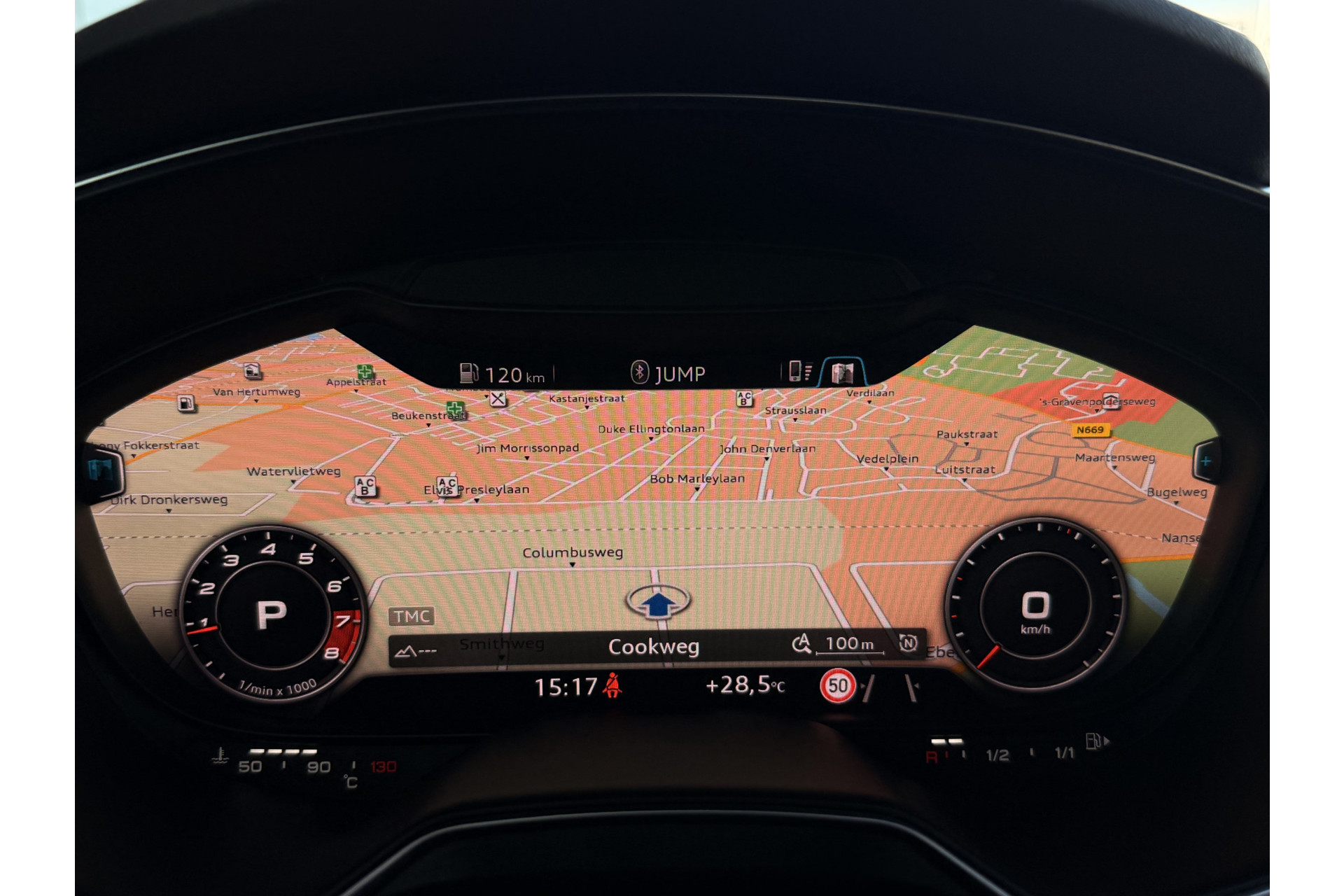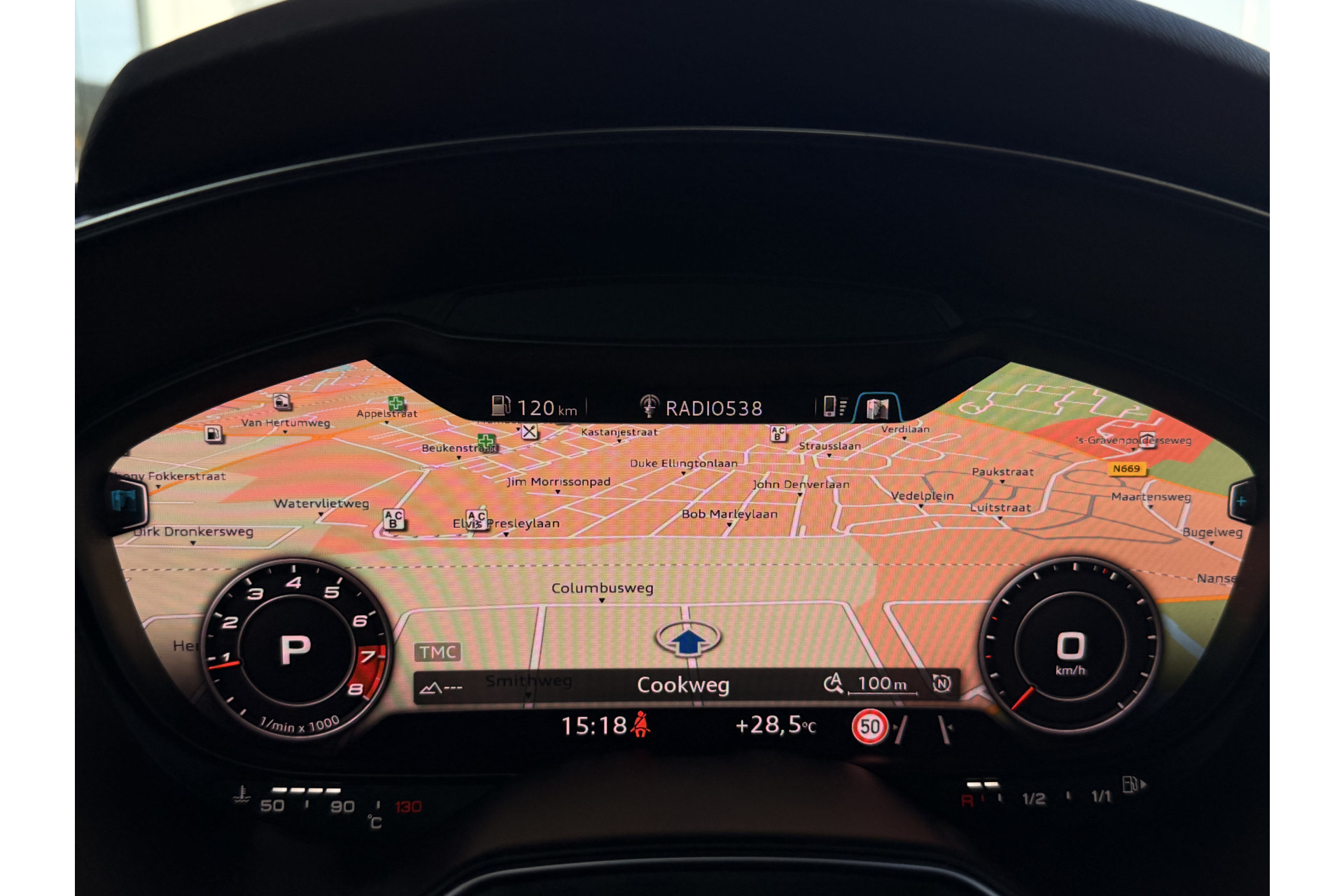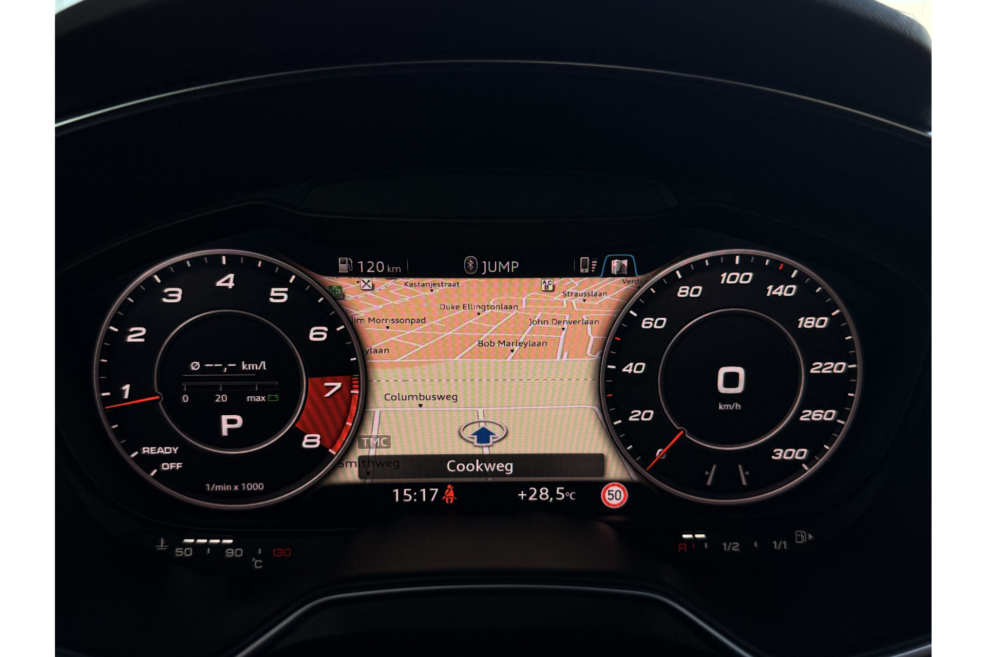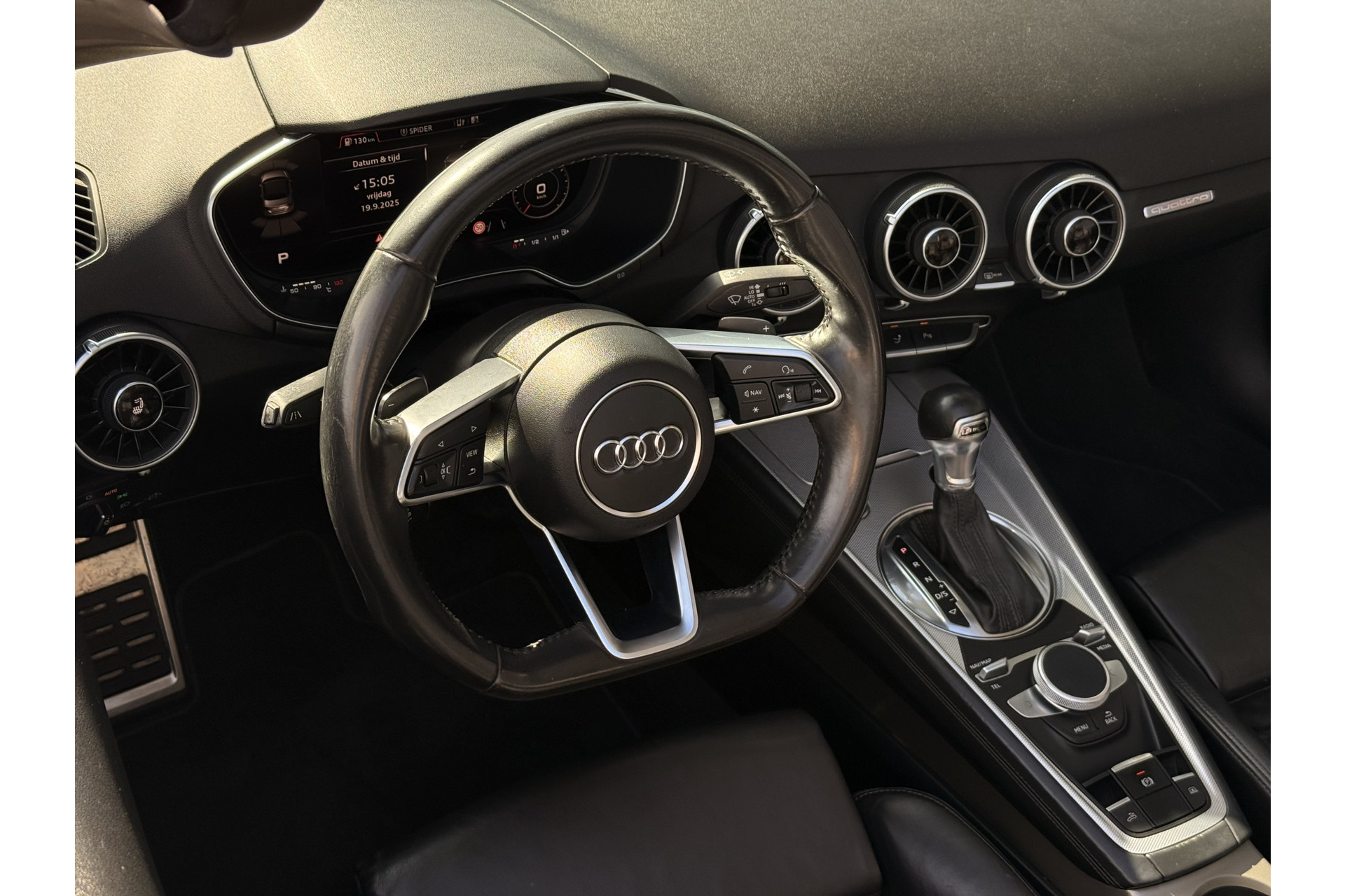 Het high performance audiosysteem is volledig afgestemd op de akoestiek van de auto; genieten dus! Met de automatische airconditioning selecteert u de gewenste temperatuur. Het systeem doet de rest. De parkeersensoren registreren alles. Ook dat ene paaltje dat net buiten uw gezichtsveld valt. In deze Audi kunt u zich concentreren op het verkeer, terwijl de auto de omgeving voor u in de gaten houdt. Een automatisch inschakelbare verlichting zorgt dat de verlichting aangaat als het donkerder wordt - in tunnels bijvoorbeeld - en de regensensor schakelt de ruitenwissers in als het nodig is. U hoeft er niets aan te doen. De voordelen van de aanwezige cruise control hoeven we niet uit te leggen. Een mooie, constante snelheid - niet te snel, niet te langzaam. Precies goed. Ook navigatiesysteem met harde schijf, lederen sportstuur, keyless entry en automatisch dimmende binnenspiegel horen tot de voorzieningen op deze auto.