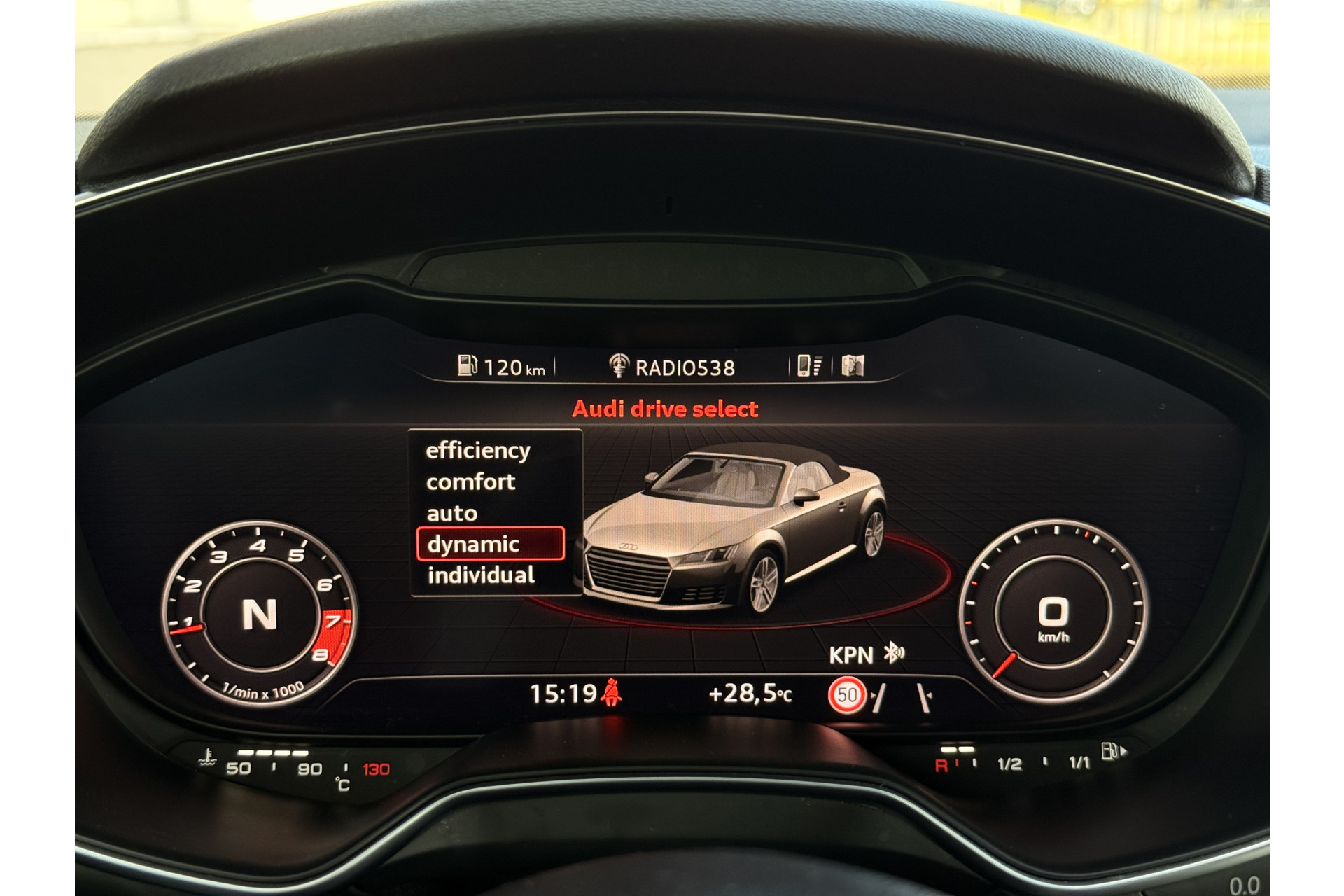 In de Audi TT Roadster heeft uw veiligheid en die van uw omgeving prioriteit. Verkeersborddetectie herkent tijdelijke en permanente verkeersborden langs en boven de weg. Het Lane-keeping systeem zorgt voor een automatisch constante positie binnen de rijstrook. Afdwalen is uitgesloten. Autorijden wordt steeds eenvoudiger. Wat dacht u bijvoorbeeld van de hill hold control? Onbeweeglijk stilstaan op een hellend vlak gaat volledig automatisch.