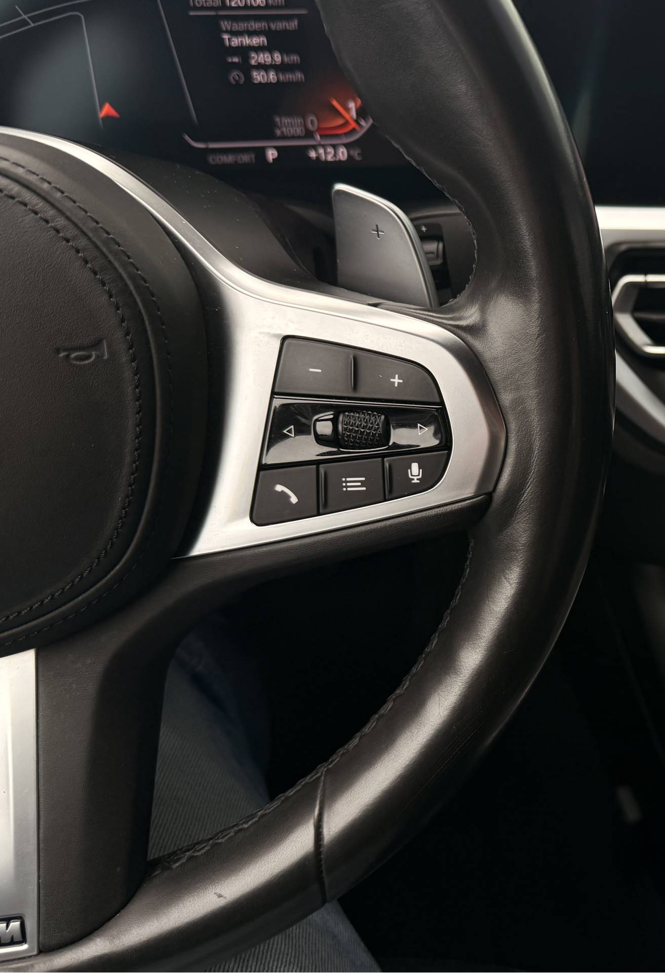 Het digitale dashboard is qua lay-out en zichtbaarheid superslim ingedeeld. Alle functies in één keer in beeld! Met de achteruitrijcamera ziet u precies wat er achter de auto gebeurt. Navigatie, onderhoudsstatus, vergrendeling, audio... de mogelijkheden van remote services zijn haast oneindig. Ook deze auto laat zich bedienen en analyseren via uw smartphone! In deze 3-serie vindt u niet alleen schakelaars op het stuur om het navigatiesysteem met harde schijf te bedienen en het audio-installatiesysteem met DAB-ontvangst, maar er is ook spraakbediening. Onderweg uw smartphone opladen zonder gedoe met stekkers en kabels? Dat kan, met de draadloze oplaadmogelijkheid voor telefoons. Ook WIFI-hotspot, achteropkomend verkeer waarschuwing, electronic climate control, lederen sportstuur, regensensor en cruise control horen tot de voorzieningen op deze auto.