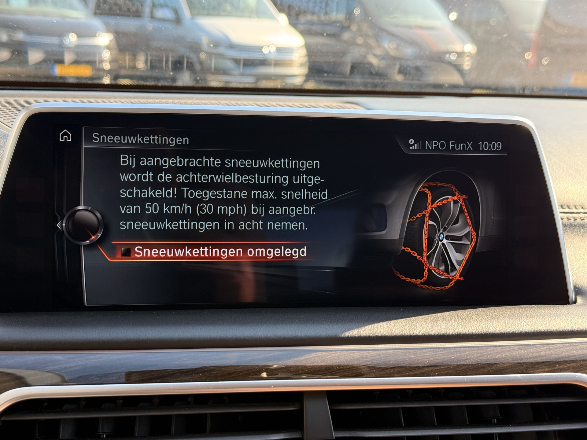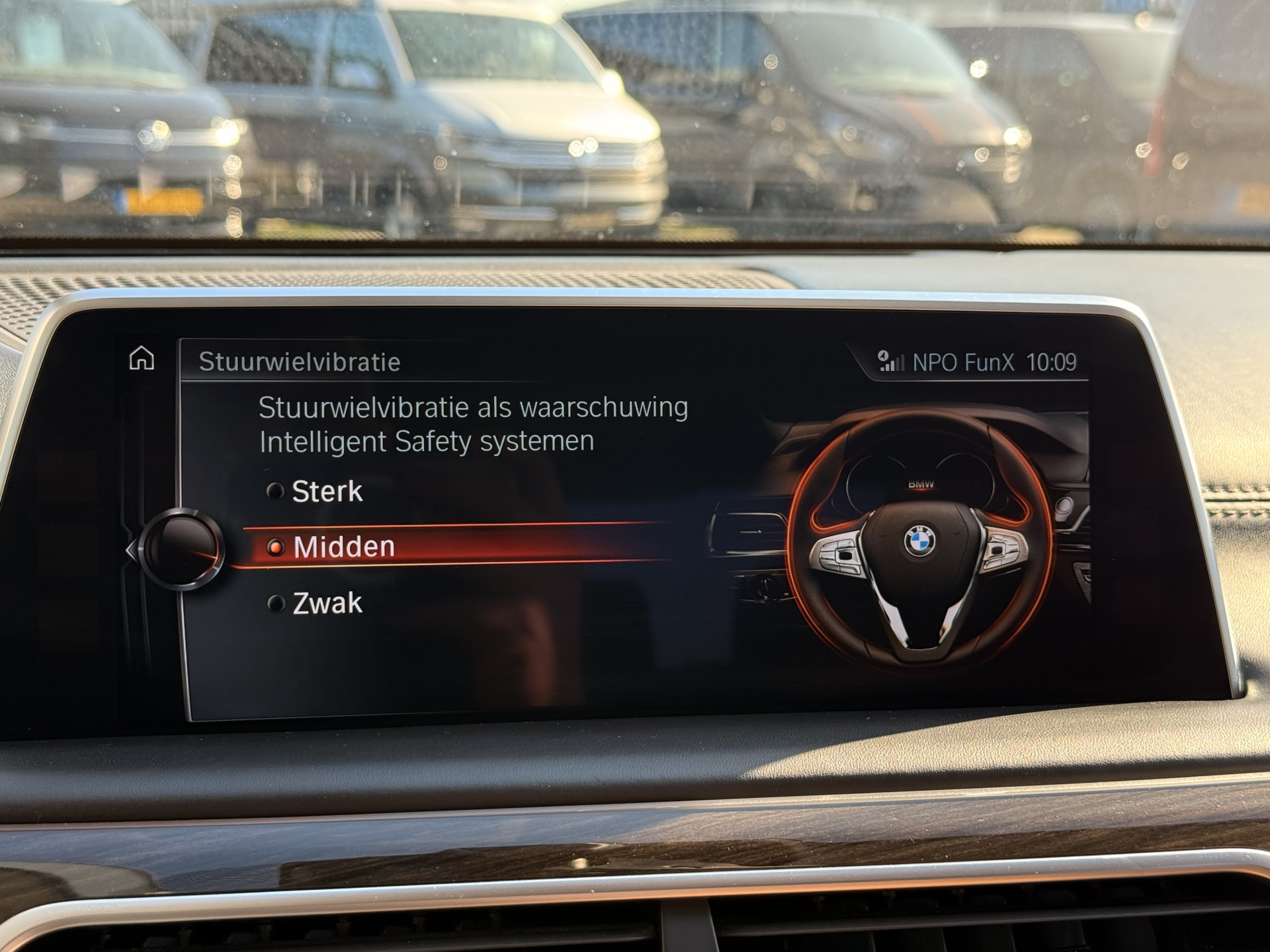 Zoals u mag verwachten van deze BMW 7-serie is hij uitgerust met een reeks aan actieve veiligheidssystemen. Bij de veiligheidssystemen van deze BMW hoort ook de verkeersbord-detectie. Die leest tijdens het rijden als het ware met u mee en attendeert u op de significante verkeersborden langs en boven de weg. Deze BMW 7-serie is ook behulpzaam als het gaat om een rechte koers. Het Lane-keeping systeem signaleert en corrigeert als u onbedoeld de rijstrooklijnen dreigt te overschrijden. In het donker ziet de nachtzichtassistent wat u zelf niet ziet. Zo zit u 's nachts ontspannen en veilig achter het stuur. In deze BMW vinden we verder een head-up display, dodehoekdetectie, hill hold functie en bandenspanningcontrolesysteem.
