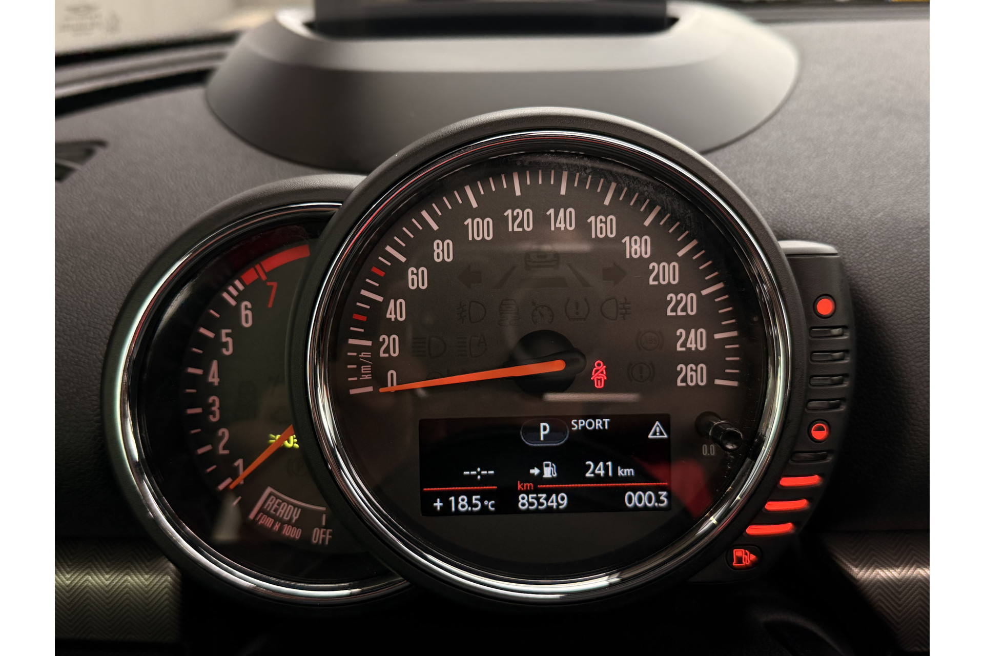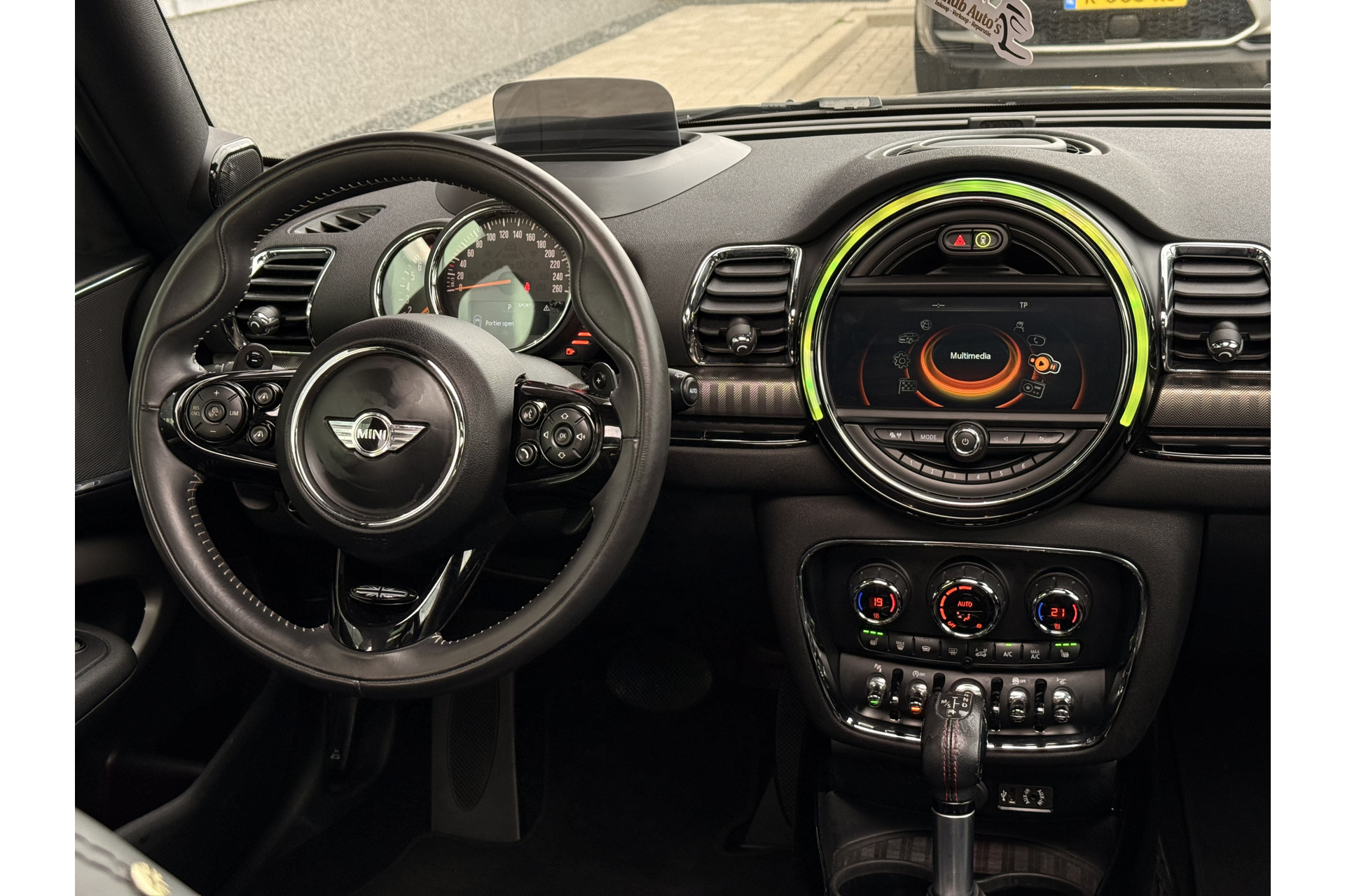 Zoals u mag verwachten van deze MINI Clubman is hij uitgerust met een reeks aan actieve veiligheidssystemen. Vermoeidheidsherkenning is een systeem dat met verschillende sensoren tekenen van vermoeidheid bij de chauffeur waarneemt. Deze krijgt tijdig een waarschuwing, wat ongelukken kan voorkomen. In deze MINI vinden we verder een head-up display, hill hold functie en bandenspanningcontrolesysteem.