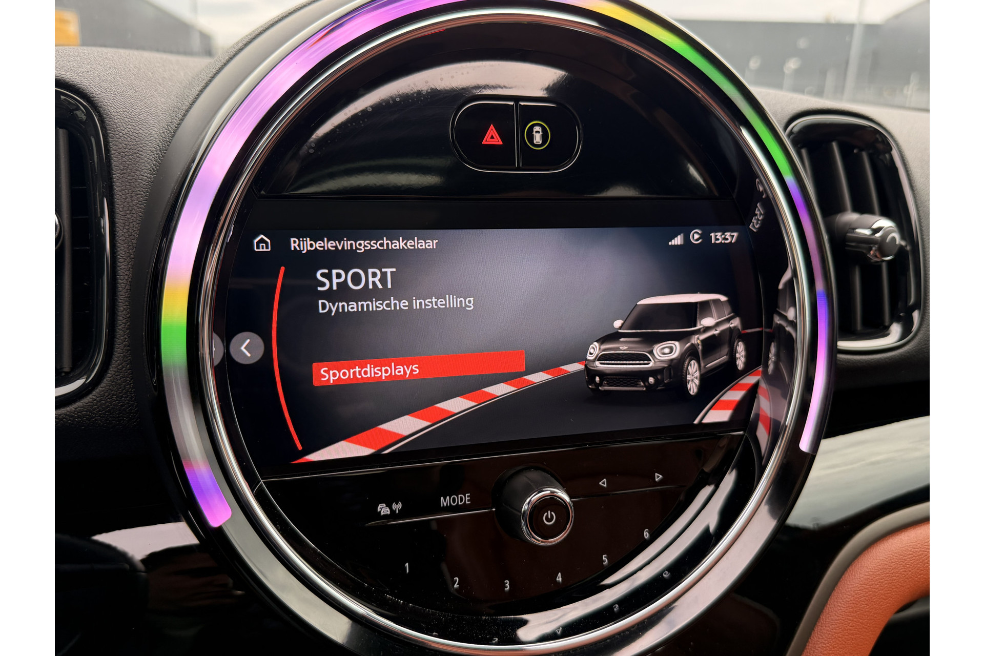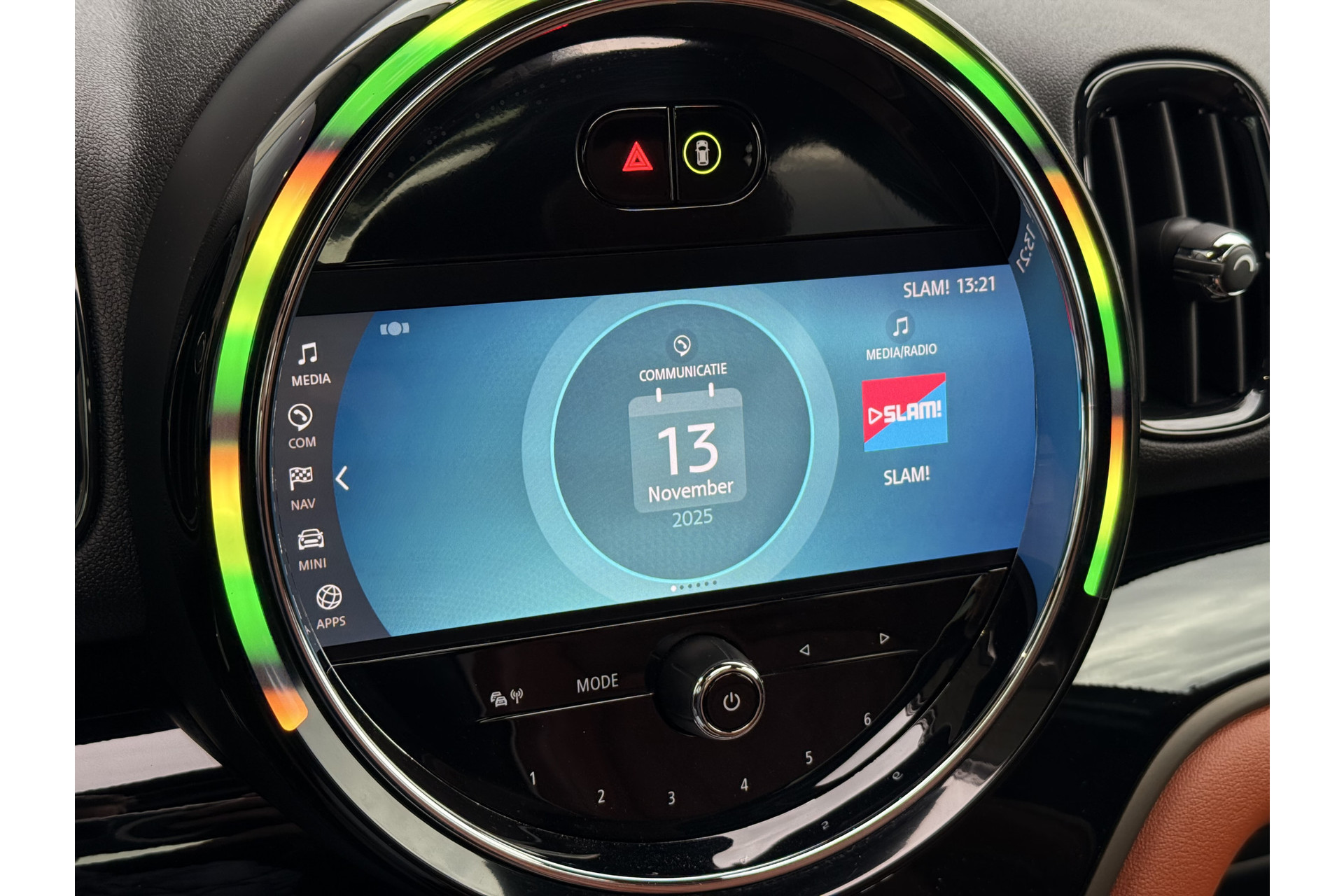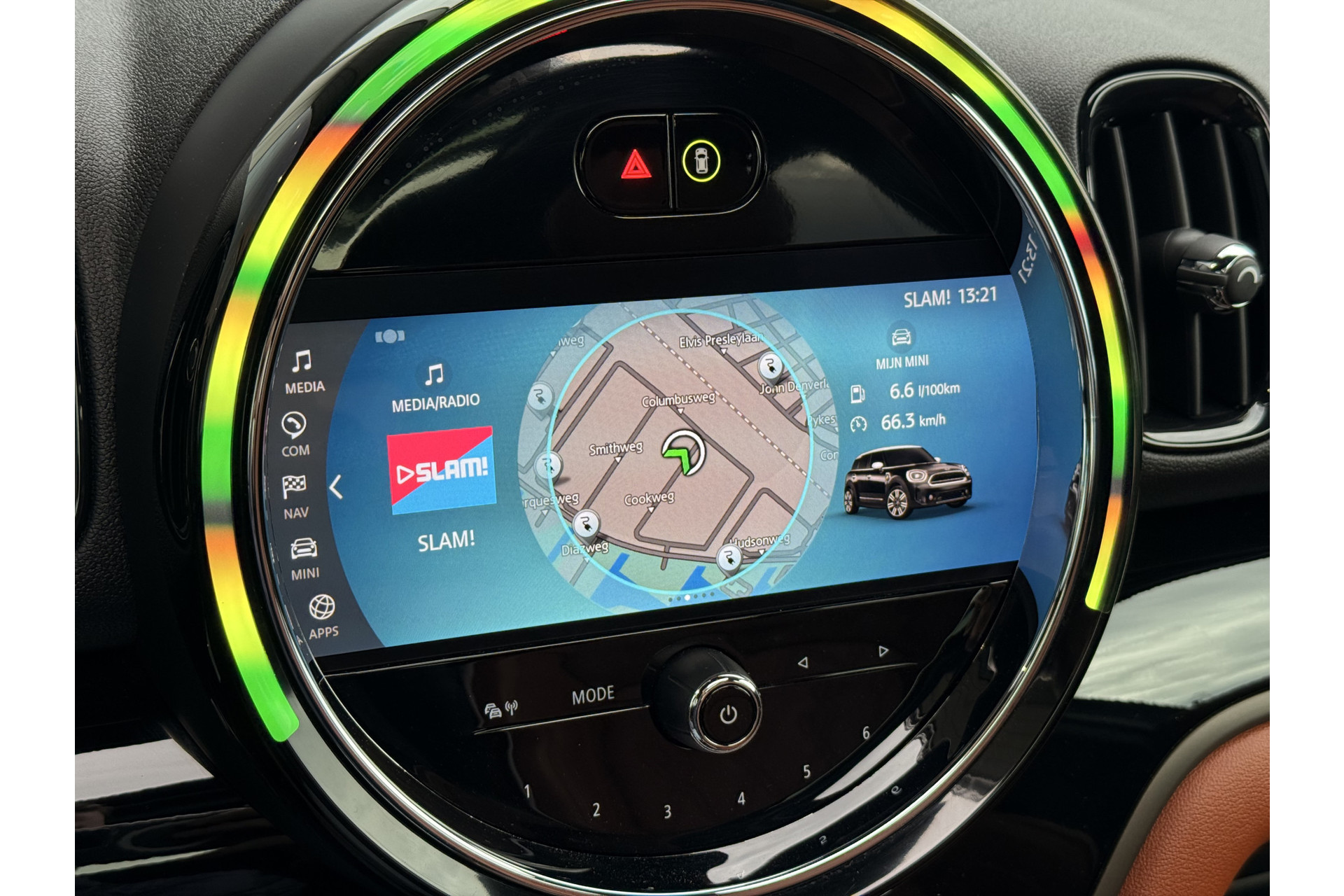 De nieuwste veiligheidssystemen komen in deze MINI Countryman samen. Hou de weg in het vizier! De head-up display zorgt dat u de dashboardinfo in beeld geprojecteerd krijgt. Een belangrijke bijdrage aan de veiligheid onderweg levert de verkeersbord-detectie. De veiligheidssystemen in deze auto nemen het zelfs waar als de bestuurder tekenen van vermoeidheid vertoont, en waarschuwen dan met een duidelijk signaal. Ook helpen het hill hold functie, autonoom remsysteem en bandenspanningcontrolesysteem, uw rit tot een veilige rit te maken.