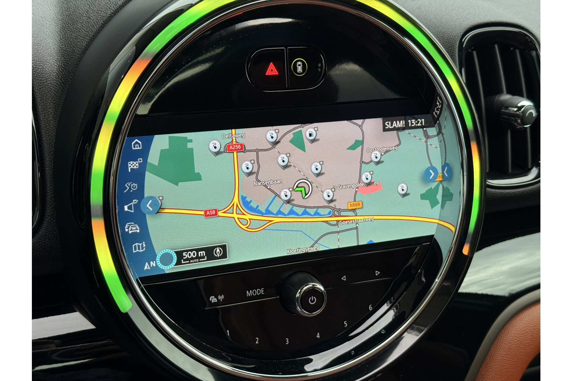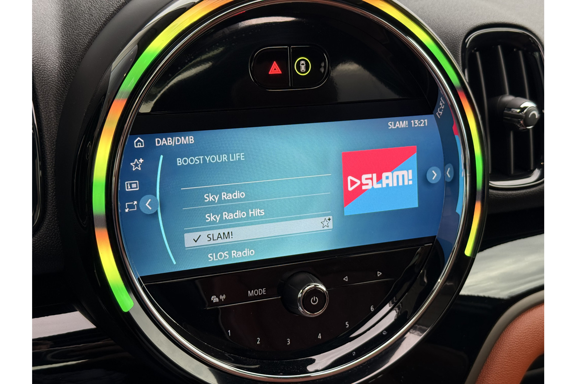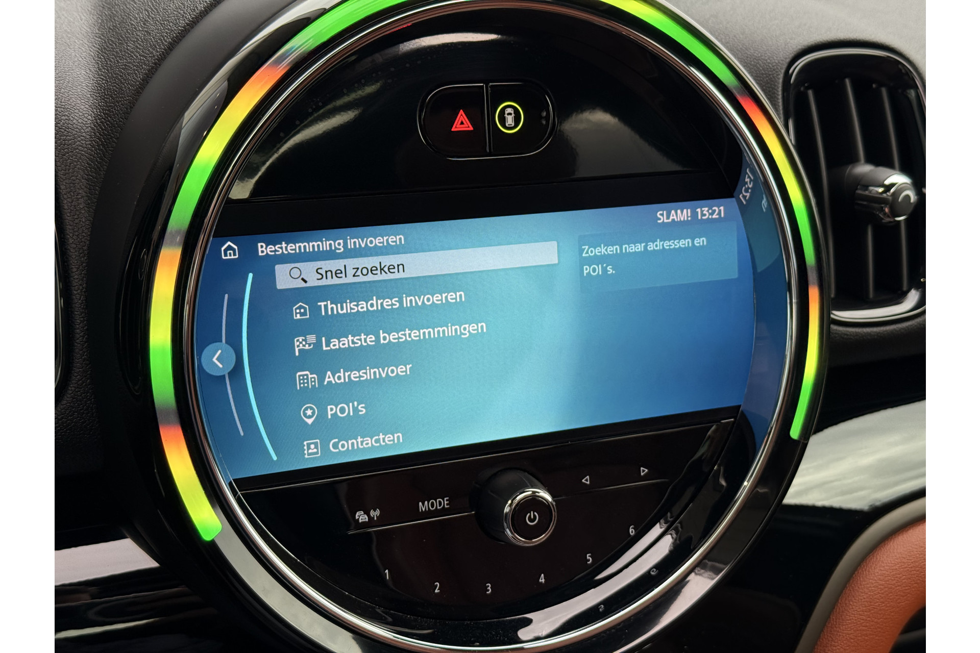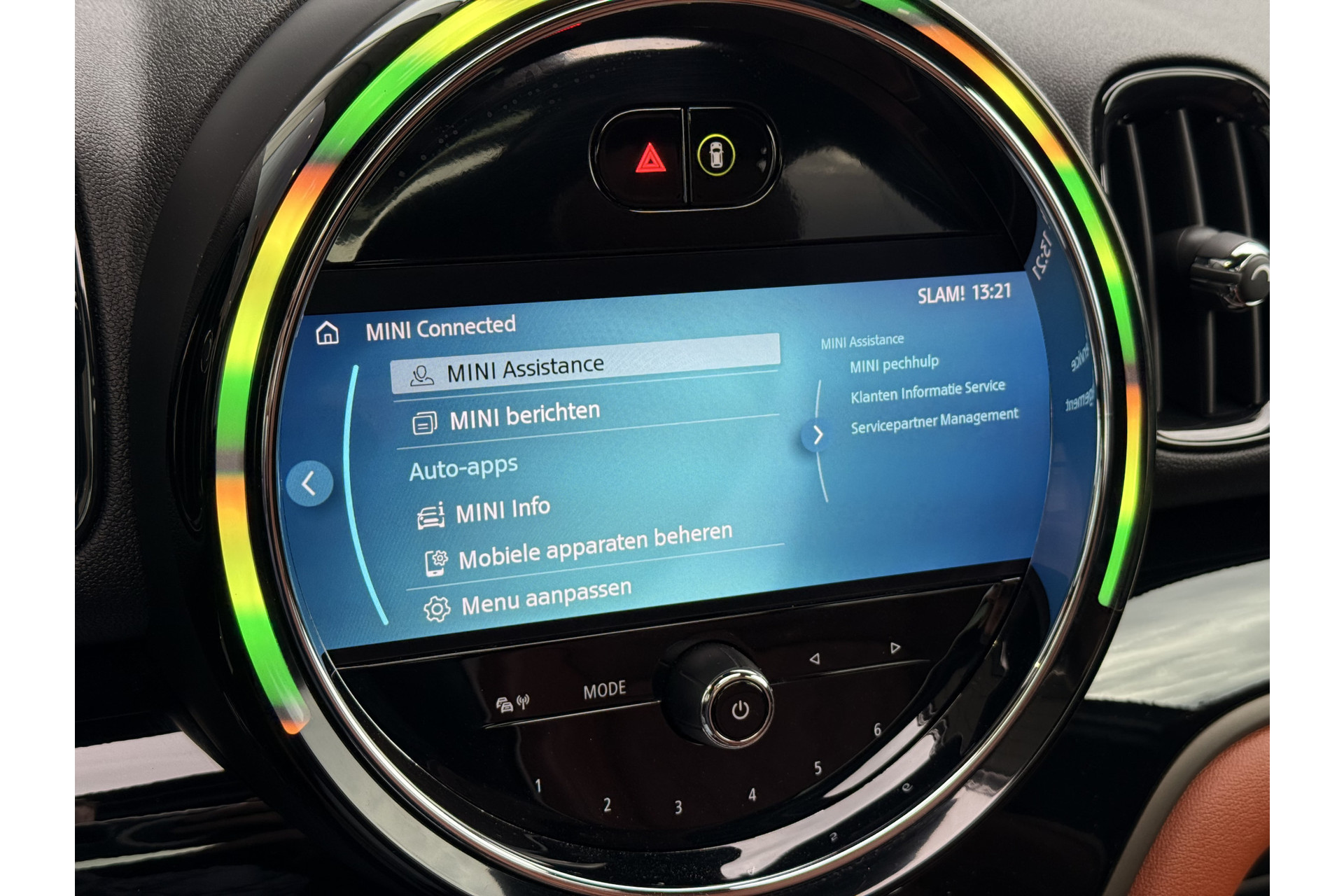 De nieuwste veiligheidssystemen komen in deze MINI Countryman samen. Hou de weg in het vizier! De head-up display zorgt dat u de dashboardinfo in beeld geprojecteerd krijgt. Een belangrijke bijdrage aan de veiligheid onderweg levert de verkeersbord-detectie. De veiligheidssystemen in deze auto nemen het zelfs waar als de bestuurder tekenen van vermoeidheid vertoont, en waarschuwen dan met een duidelijk signaal. Ook helpen het hill hold functie, autonoom remsysteem en bandenspanningcontrolesysteem, uw rit tot een veilige rit te maken.