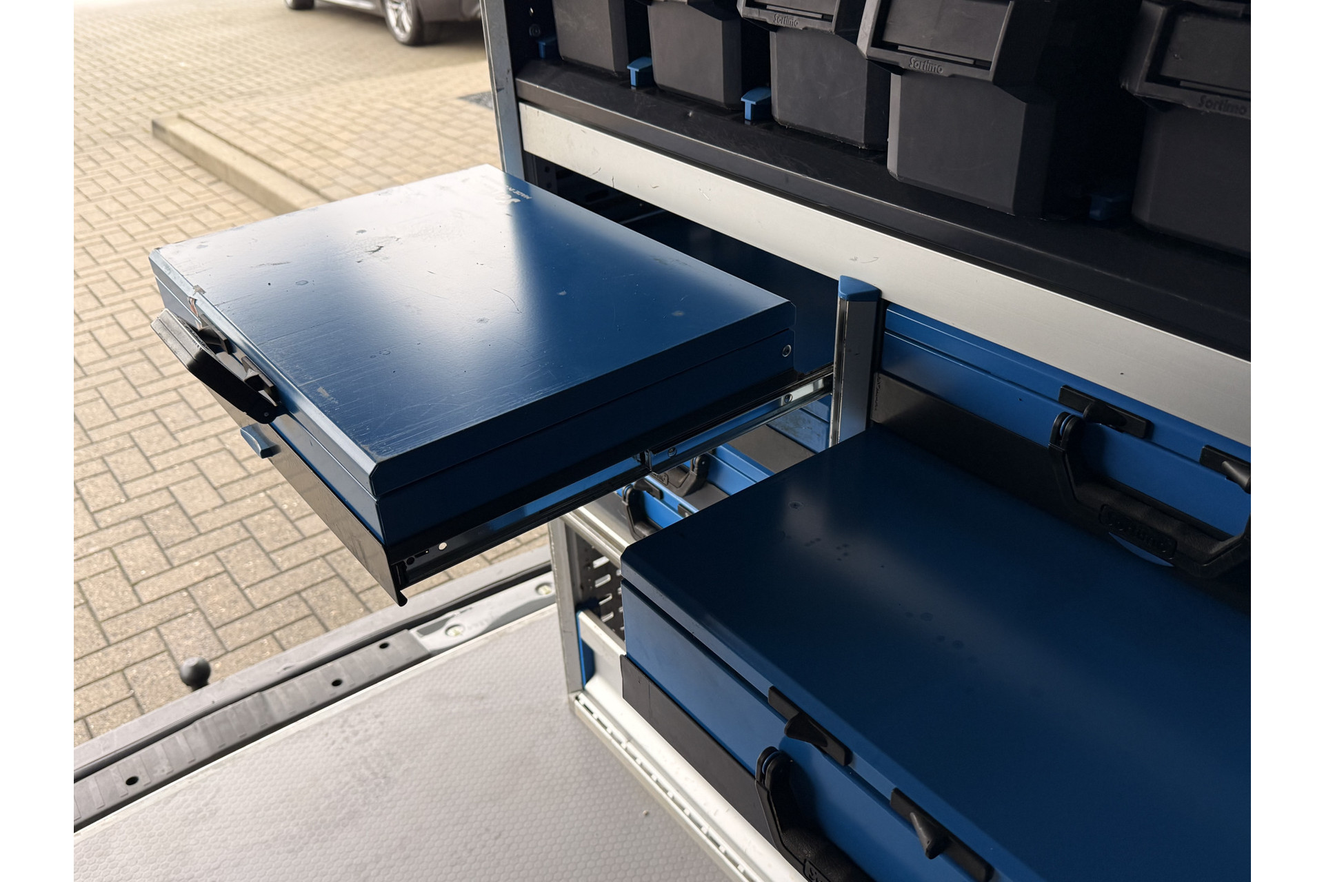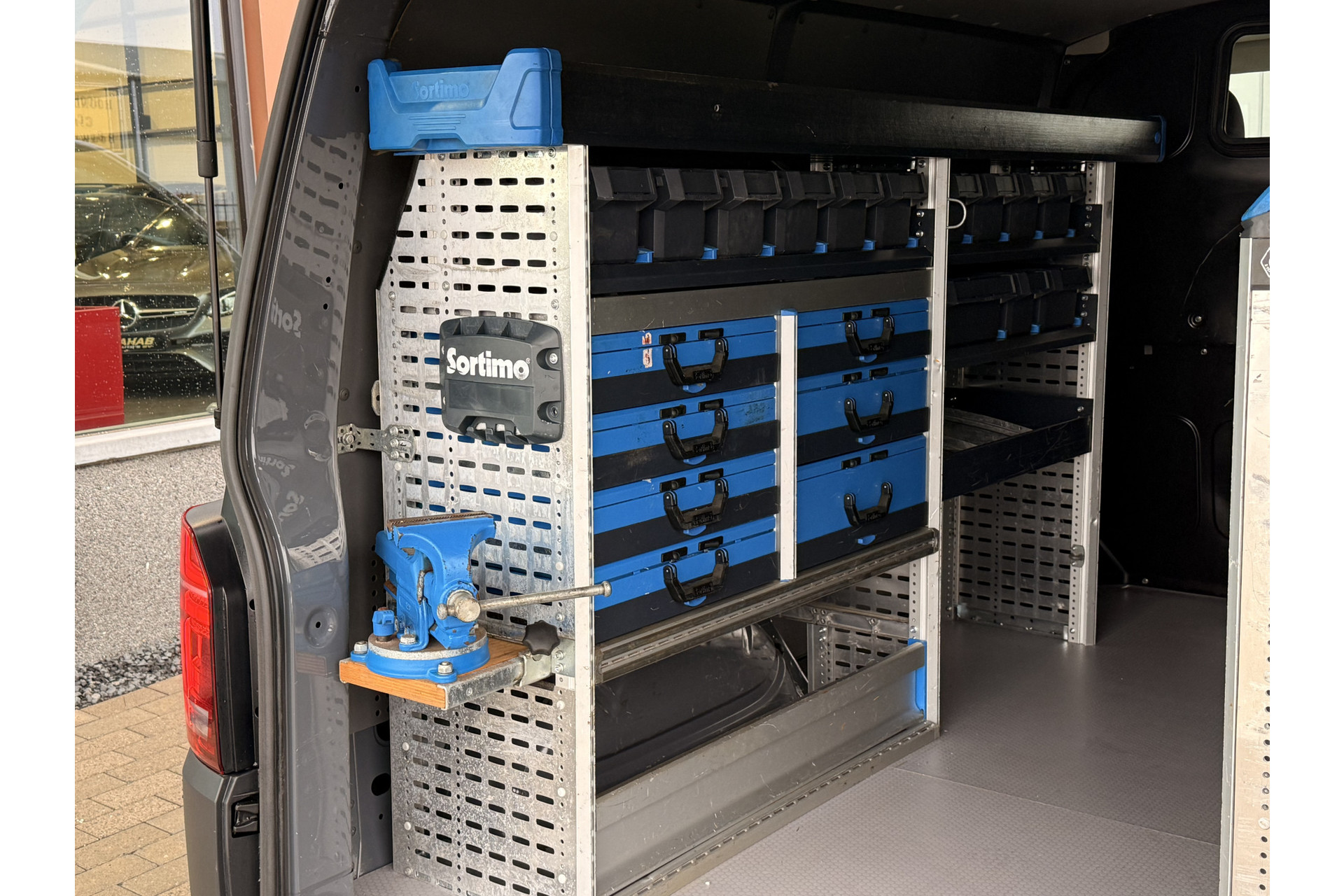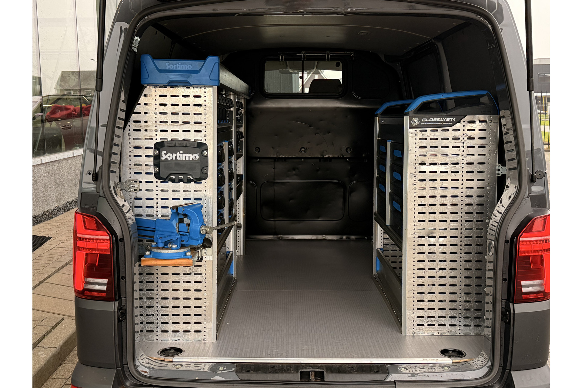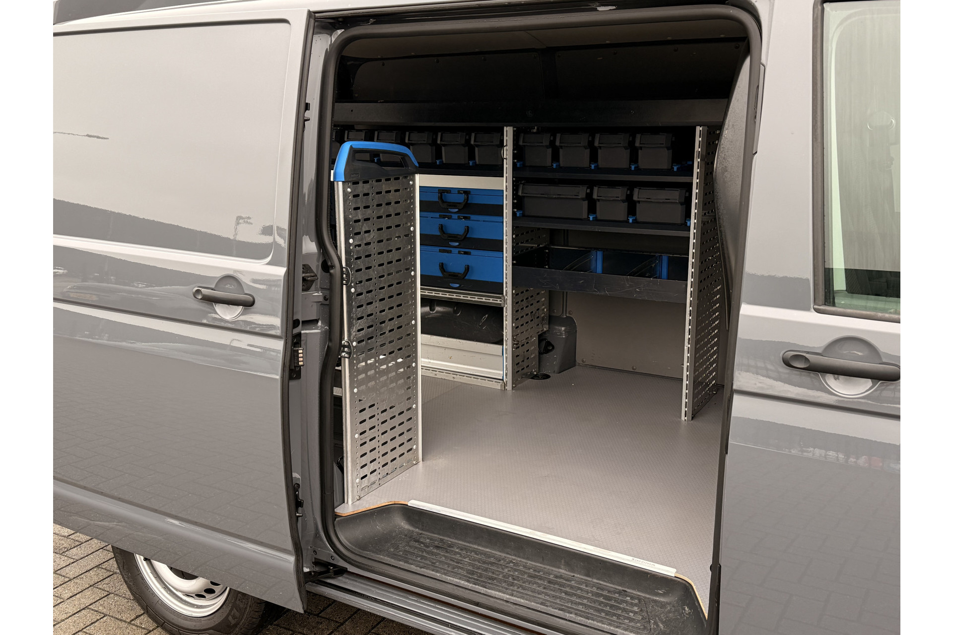 Deze Volkswagen Transporter is voorzien met ingebouwde gereedschapskasten.