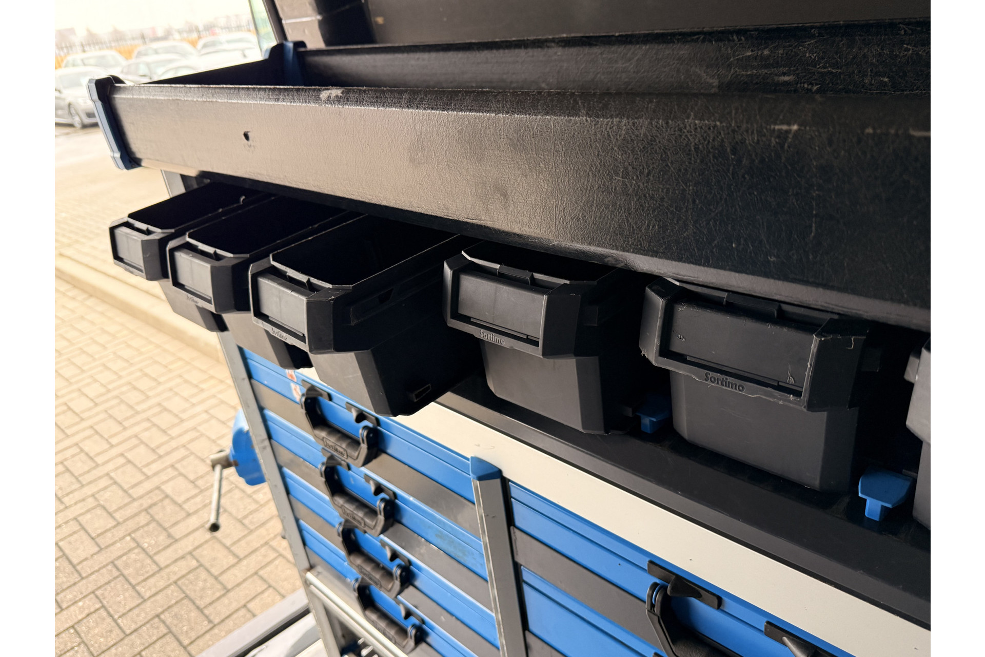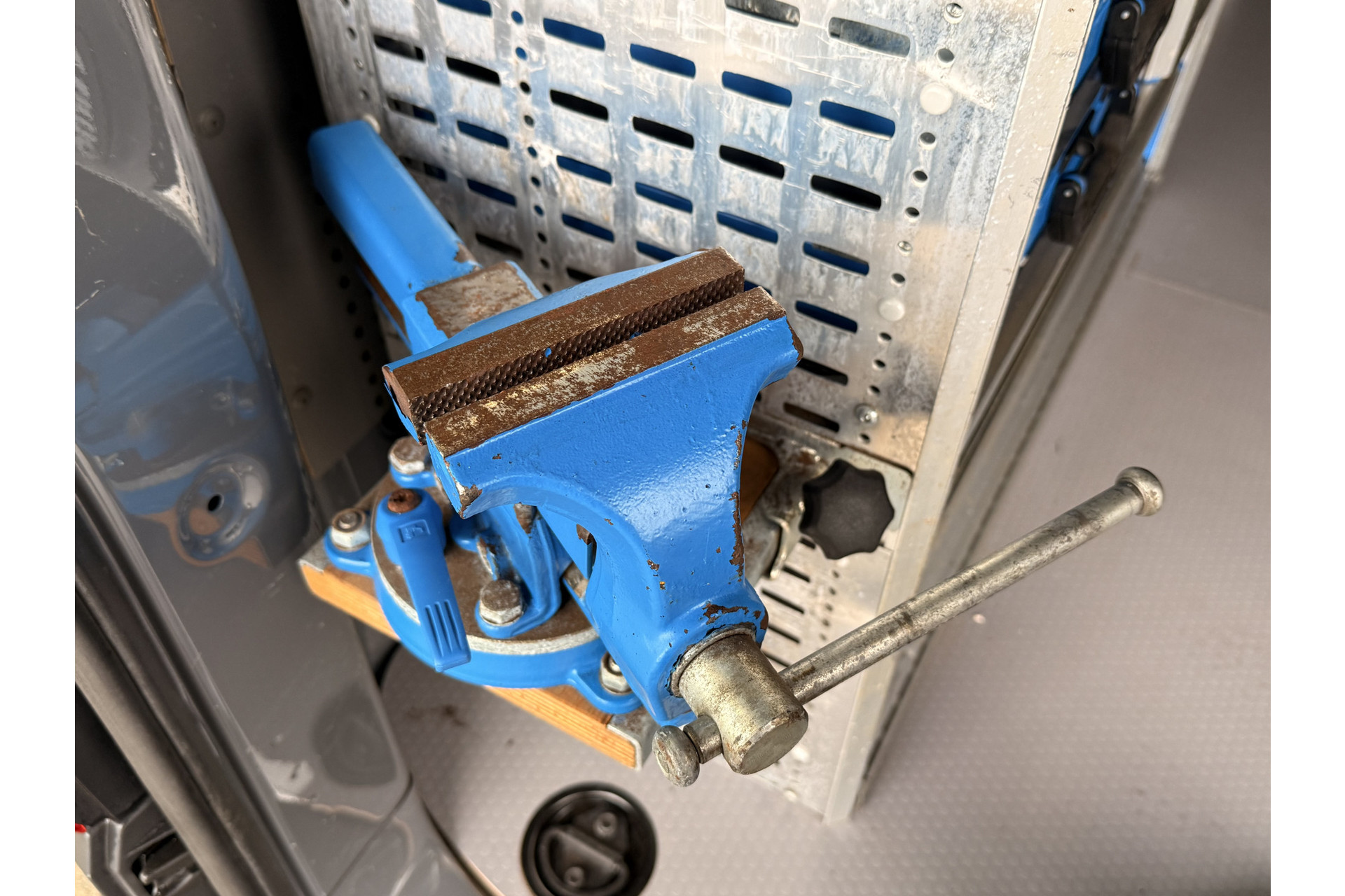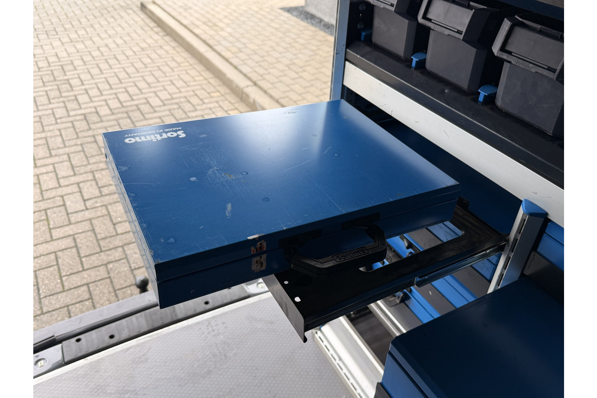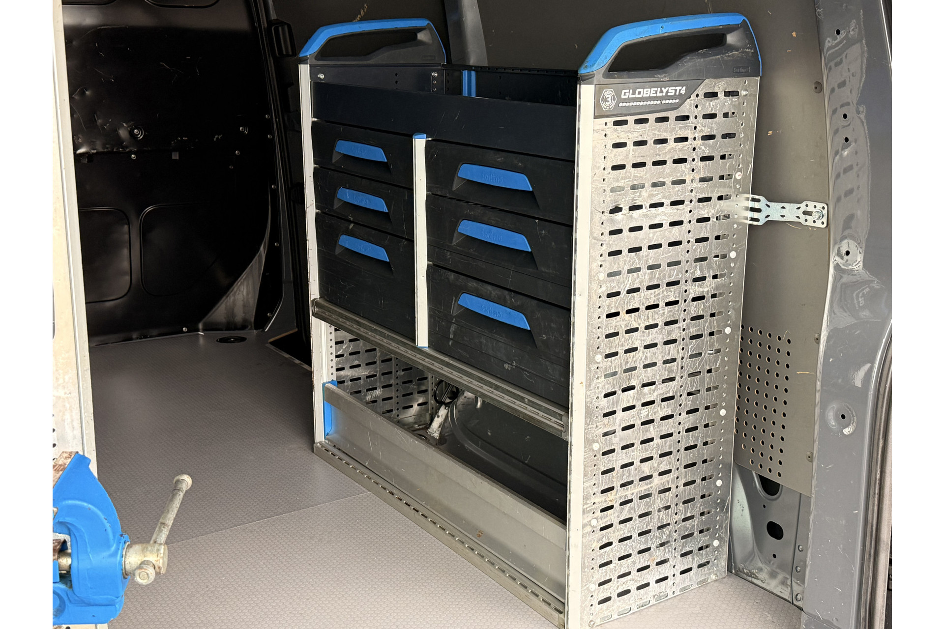 Deze Volkswagen Transporter is voorzien met ingebouwde gereedschapskasten.